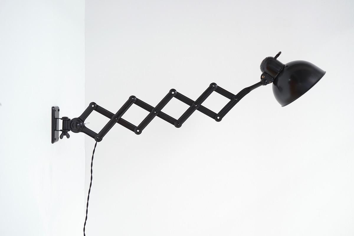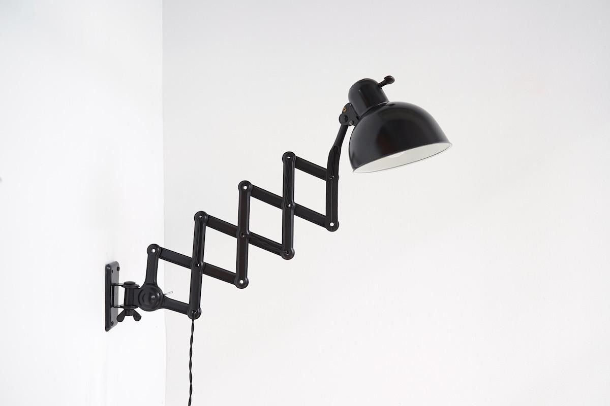 ドイツ『KAISER-IDELL』社のシザーランプ。モデルは6718タイプ。1930年代にクリスチャン・デルによりデザインされバウハウスランプのアイコンともされる代表的なシザーランプ。シザー部分やジョイント部分も問題なく稼動しコンディションも良好です。配線仕様は、コンセントタイプでコードは2mお付けいたします。電球は付きませんのでご了承ください。コード長さ調整、仕様変更可。配線仕様の変更ご希望の場合は備考欄にご記入ください。ヴィンテージランプにつきLED電球の使用を推奨します。