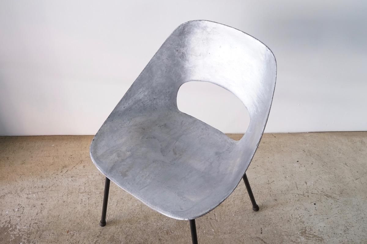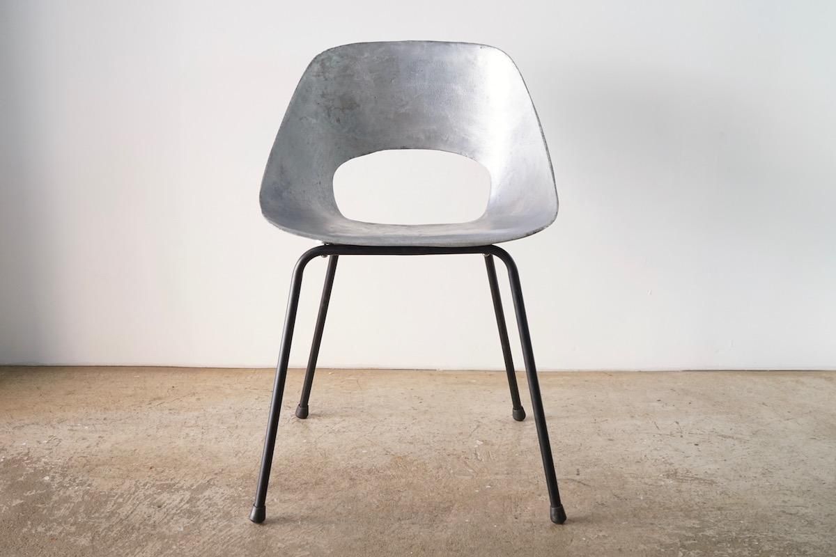 フランスのデザイナー『Pierre Guarriche』のチューリップチェアー。1953年にデザインされフレンチモダンを代表する名作椅子。溶解したアルミニウムを鋳型に入れ形成された座面は、一つとして同じ表情が無いのも魅力の一つ。