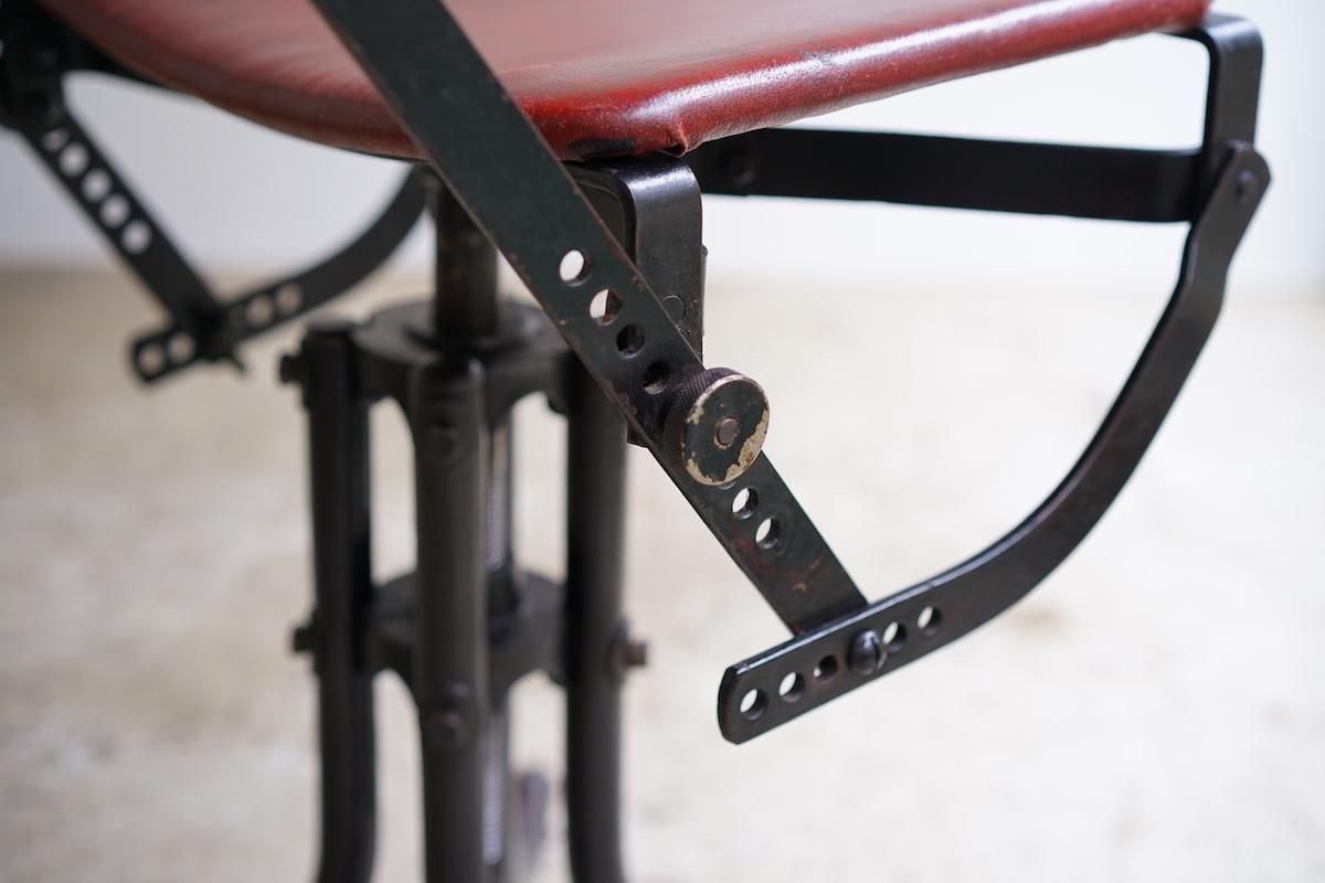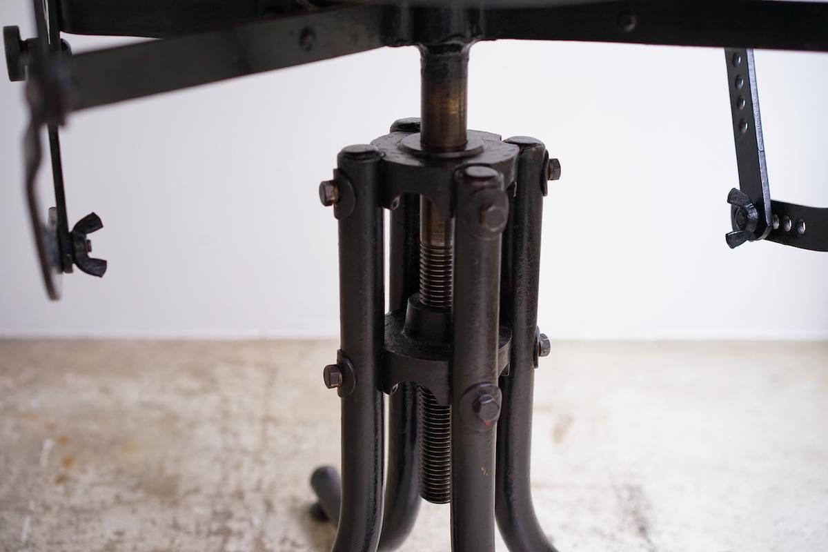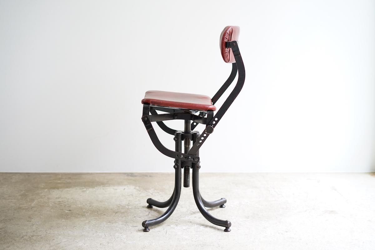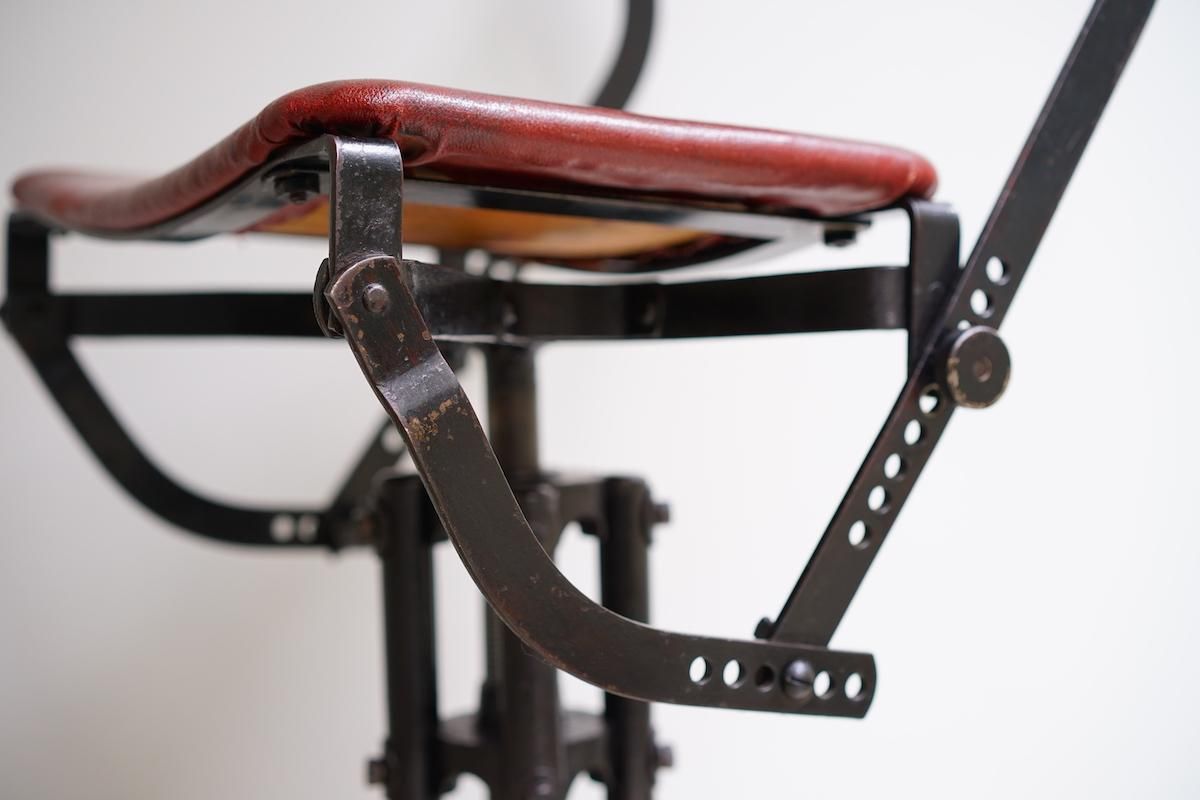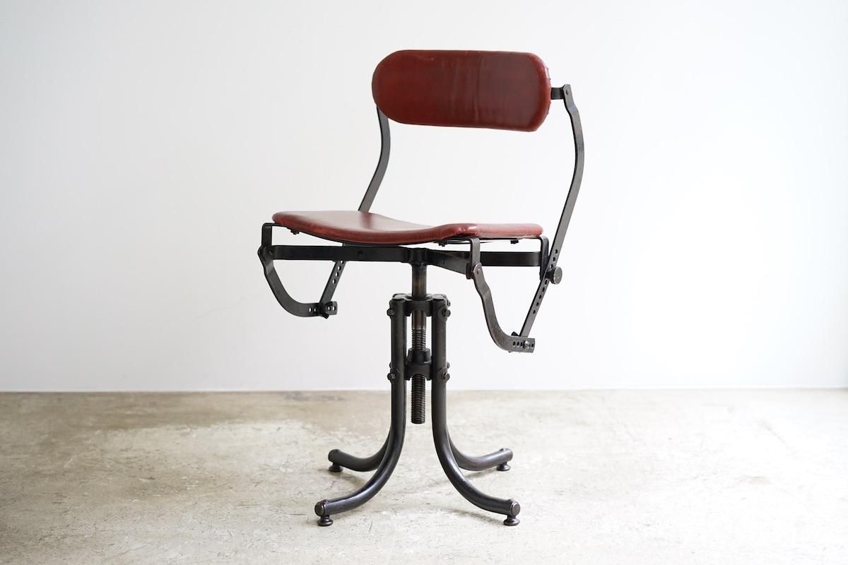 フランス『BIENAISE』社のインダストリアルチェアー。1920年代の創業初期に製造されたとても希少なモデルです。状態も良く実際に椅子としてご使用いただけます。サイドフレーム部分を調整して背もたれの角度を変えられます。高さは回転式で座面を回す事で高さが調整できます。こちらモデルは大変希少で滅多に市場に出回りません。フレンチインダストリアルのアイコン的な椅子ですのでアートピースとして眺めて頂きたい一品です。