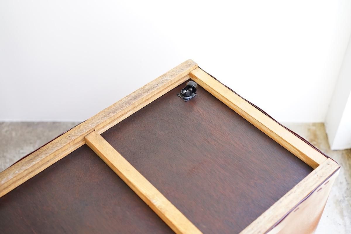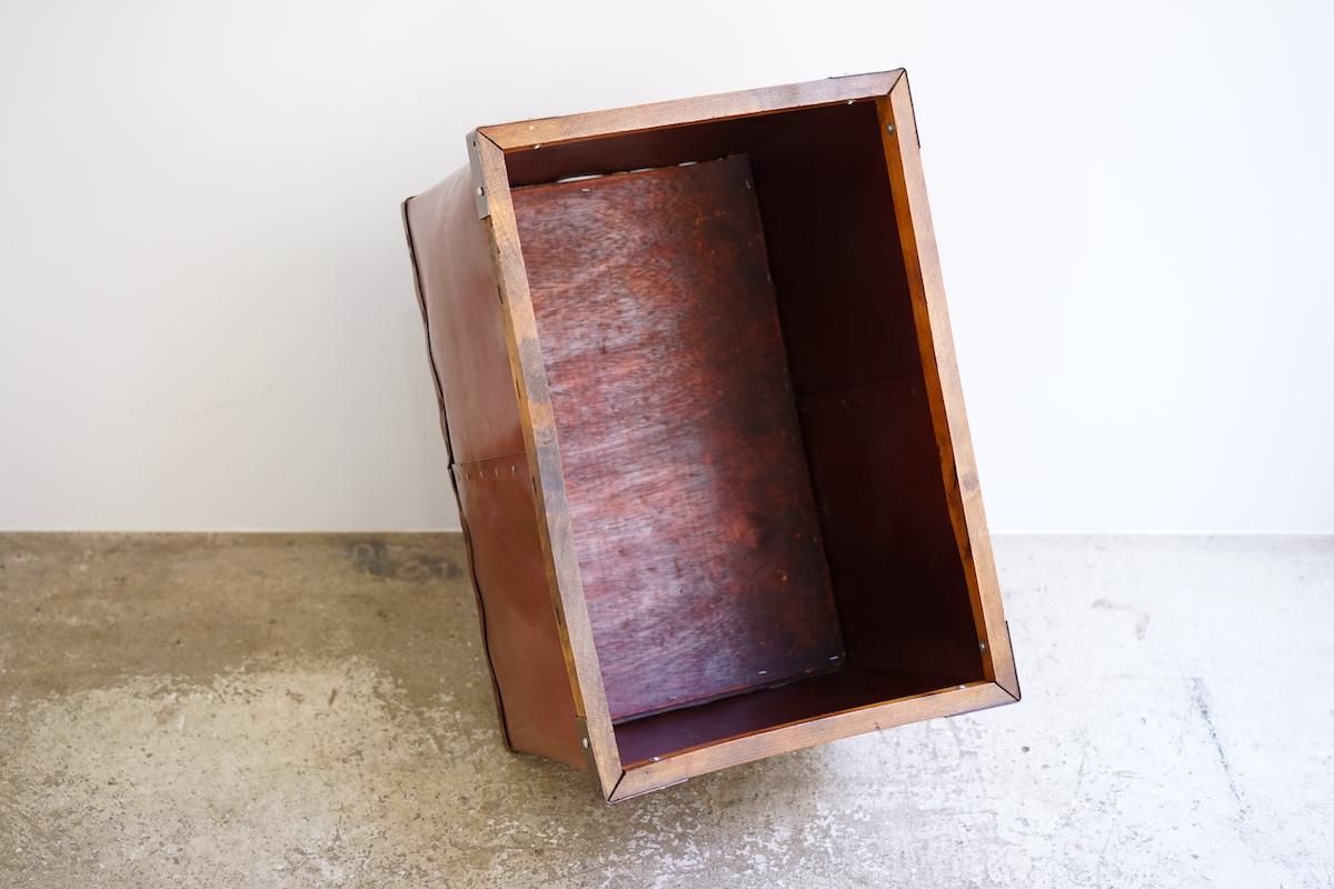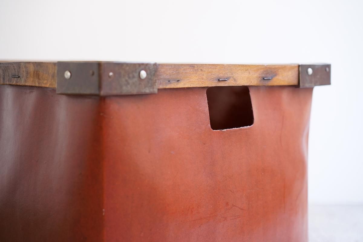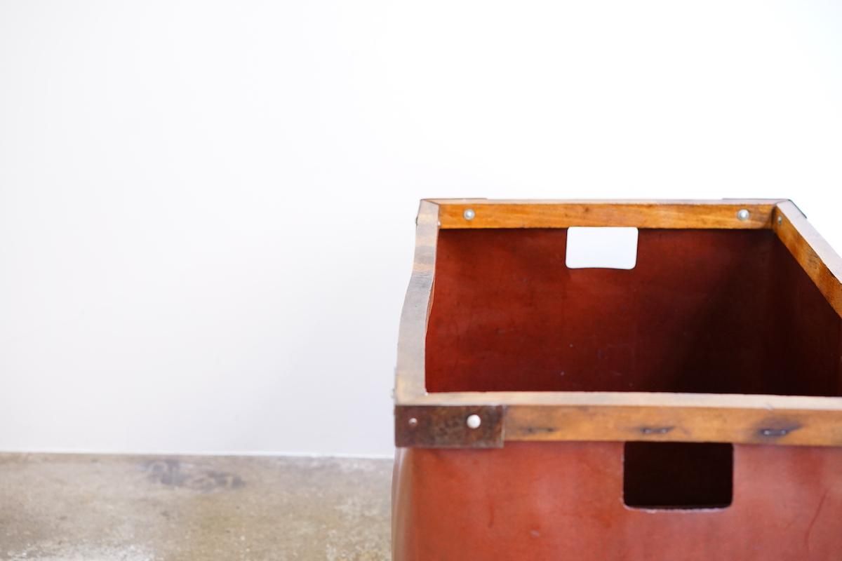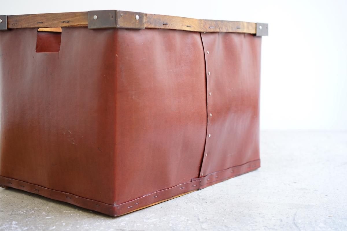 ドイツ製のバルカンファイバーボックス。縫製工場などで使用されていたアイテムです。軽量で持ち運びもしやすく様々な用途でご使用頂けるかと思います。内側にはクリア塗装しておりますので衣類など入れても問題無くご使用頂けます。フランス製の物に比べるとディテールが可愛らしい雰囲気です。下部にキャスター(無料)をご希望の方は備考欄にご明記ください。