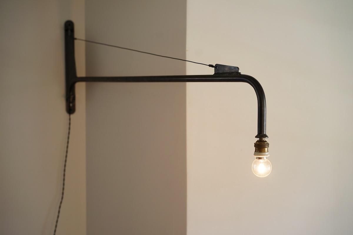 フランス製のインダストリアルウォールランプ。フレーム部分が可動し180°お好きな角度でご使用いただけます。ブラックポリッシュしたフレームが渋く格好良いです。配線仕様は、コンセントタイプでコードを1.9mお付けいたします。コード長さ調整、仕様変更可。配線仕様の変更ご希望の場合は備考欄にご記入ください。コードスイッチ(サービス)をご希望のお客様は備考欄にご記入ください。