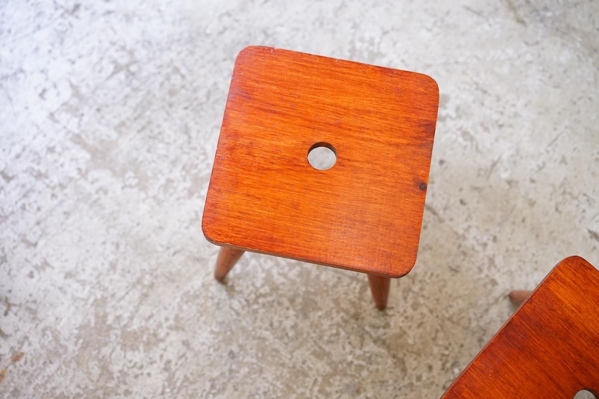 フランスで仕入れたウッドスツール。ミニマルでとても可愛らしいサイズ感のウッドスツール。通常の椅子と同じようにフレームが継がれているので強度も有り大人でも座っていただけます。ちょっと腰を掛けるのにちょうど良い高さです。ディスプレイ台として花器など置いても可愛いくマルチにおご使用いただけます。AorBご希望の方を備考欄にご記載ください。