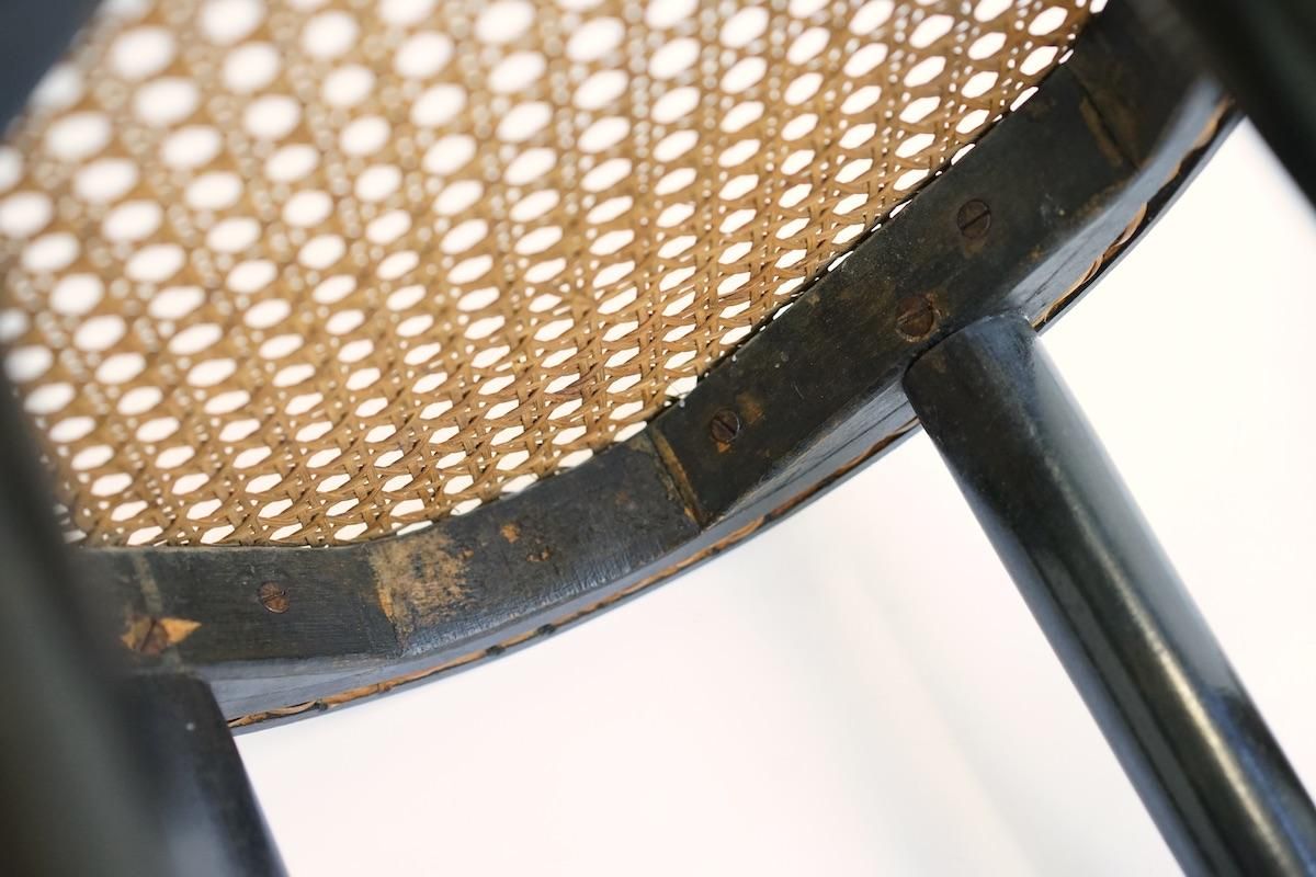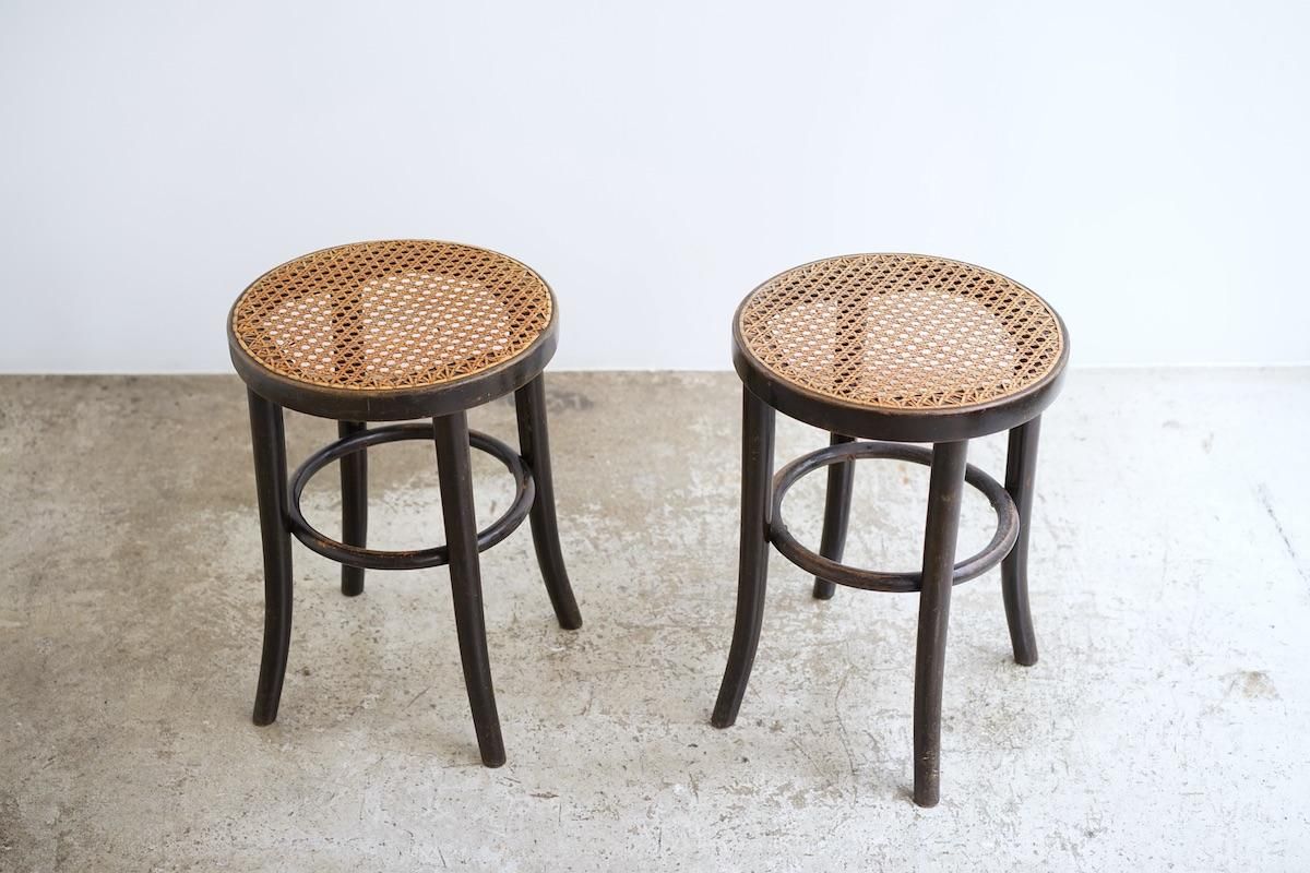 オーストリア『THONET』社製のラタンスツール。1930年代に『MUNDUS』社と『THONET』社が合併した頃に製造されたモデルになります。座面部分が経年変化で飴色に変色しとても良い雰囲気です。フレーム部分の割れなどもなくもグッドコンディションです。座面の高さが低いモデルなのでダイニングテーブルなどに合わせてもご使用いただけます。実際に現在もお座りいただけますが、商業施設など不特定多数の方が使用する箇所でのご使用はお控えください。