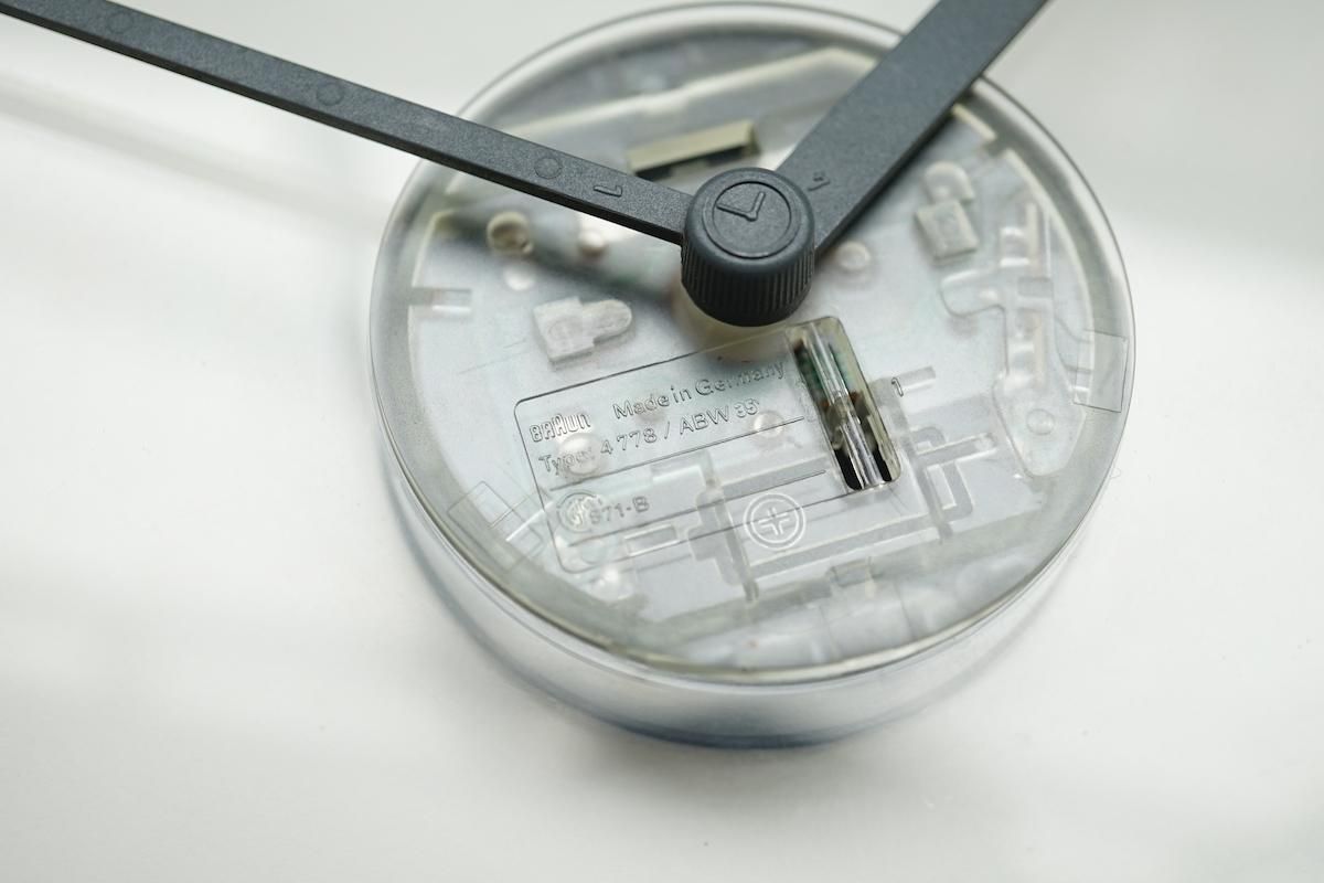 ドイツ『BRAUN』社のウォールクロック。デザイナーはディートリッヒ・ルブス。1988年にデザインされたABW35-Type4778モデル。オリジナルのクォーツで単5電池で稼動確認済みです。プラスチック特有の色褪せも無くオリジナルカラーが状態良く保たれております。表面に細かなスレ傷がございますがとても良いコンディションです。