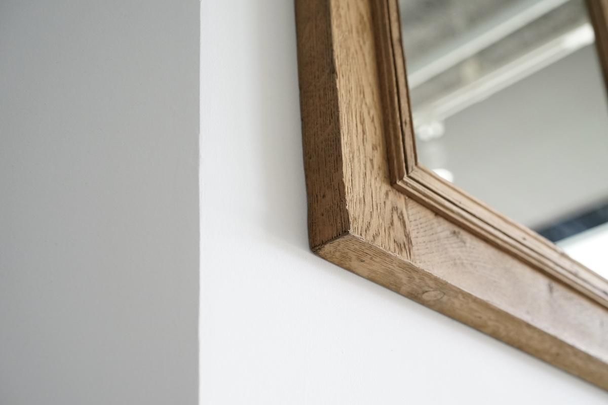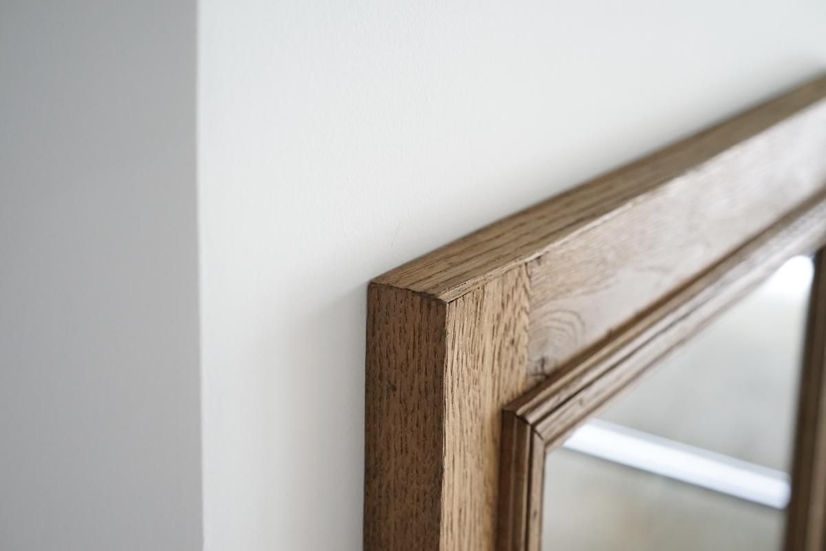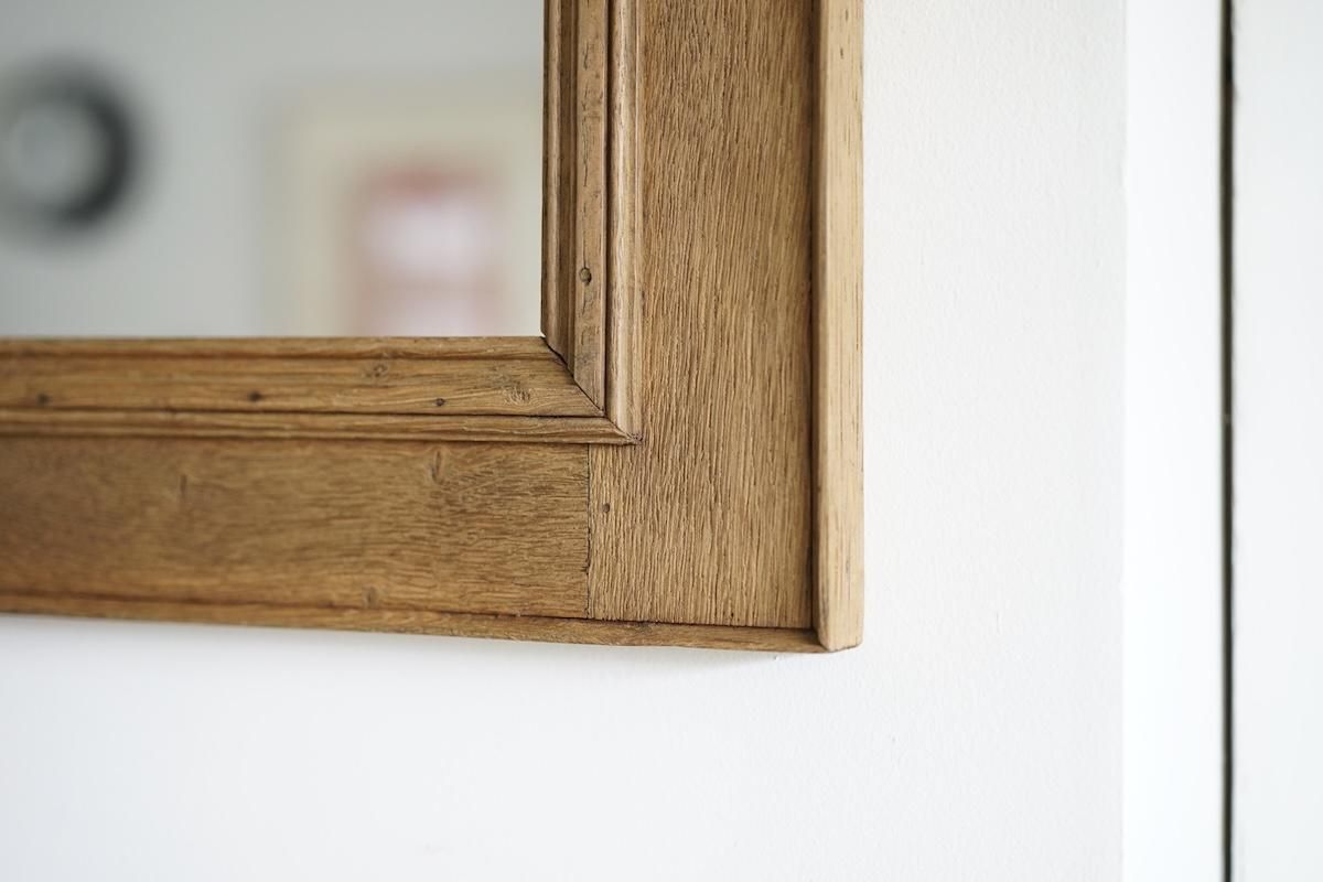 フランス製のオーク材のフレームミラー。さりげないモール装飾がフランスらしい美的センスを感じます。フレーム部分はソープフィニッシュにて仕上げている為シャビーな雰囲気でクラシカルテイストやインダストリアルな空間にも落とし込みやすくマルチにお使い頂けるかと思います。個人的にとても好きなラインでなかなかこのような雰囲気のフレームはありそうでお目にかかれない逸品です。ミラーを外せば額としてもご使用頂けます。