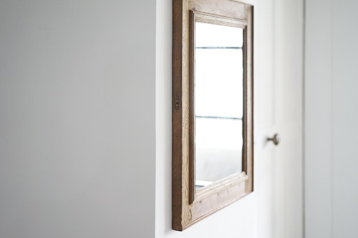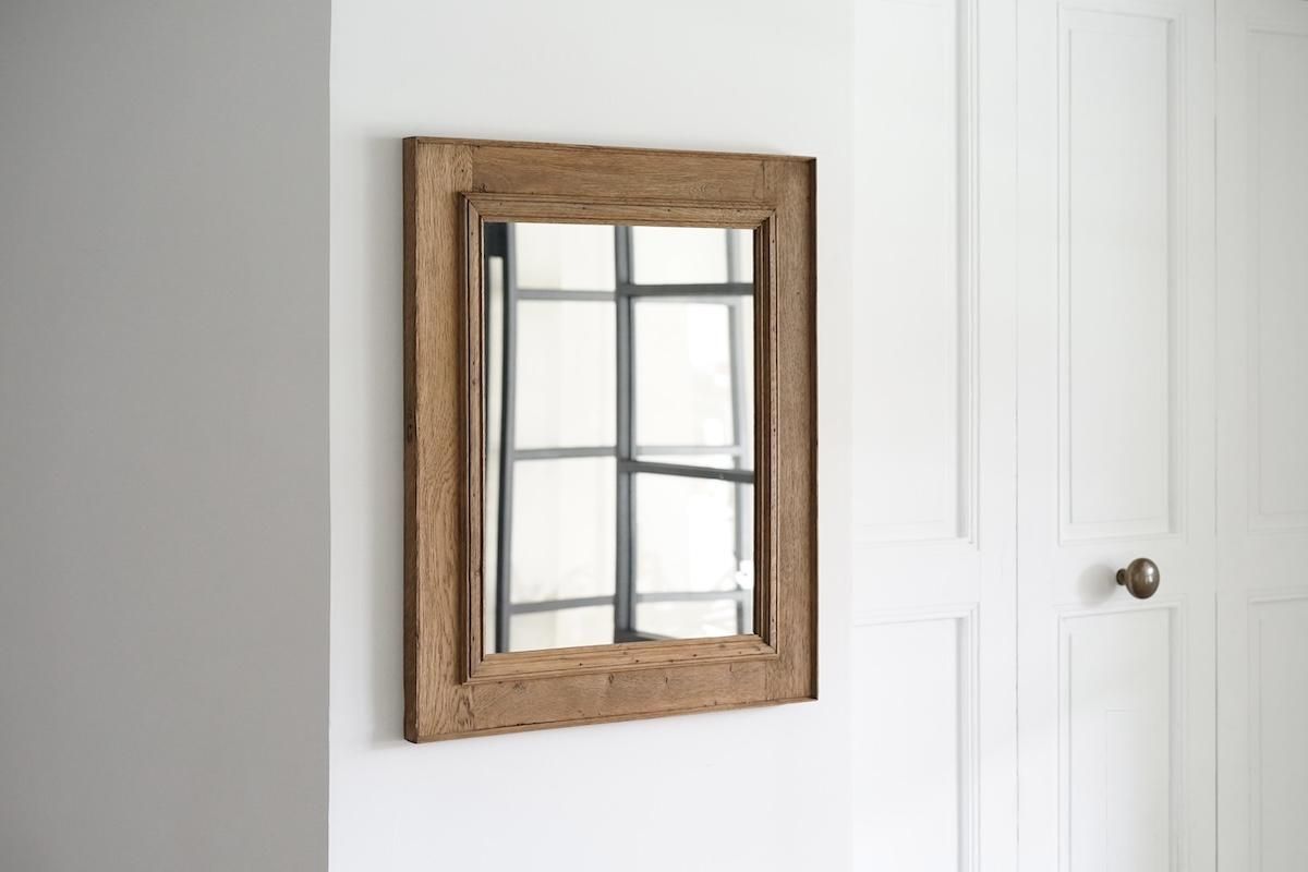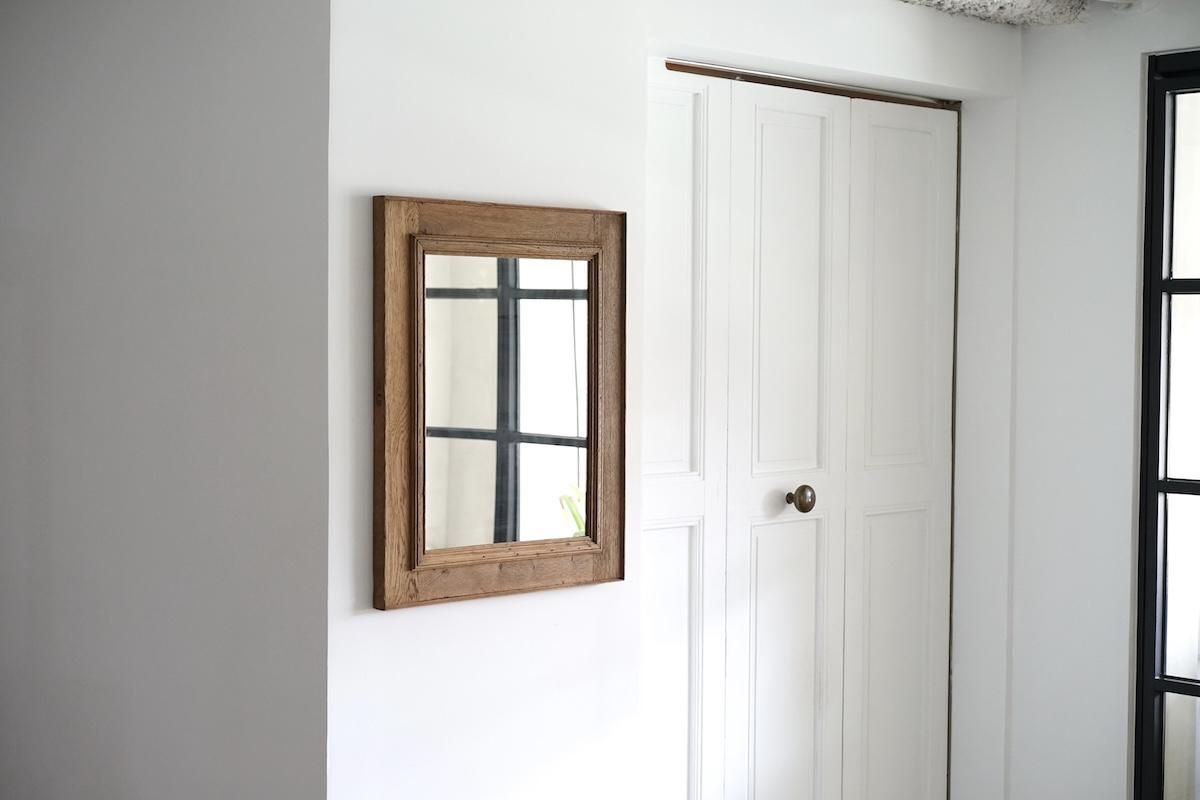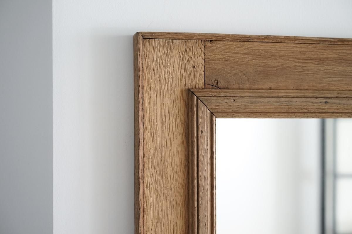 フランス製のオーク材のフレームミラー。さりげないモール装飾がフランスらしい美的センスを感じます。フレーム部分はソープフィニッシュにて仕上げている為シャビーな雰囲気でクラシカルテイストやインダストリアルな空間にも落とし込みやすくマルチにお使い頂けるかと思います。個人的にとても好きなラインでなかなかこのような雰囲気のフレームはありそうでお目にかかれない逸品です。ミラーを外せば額としてもご使用頂けます。