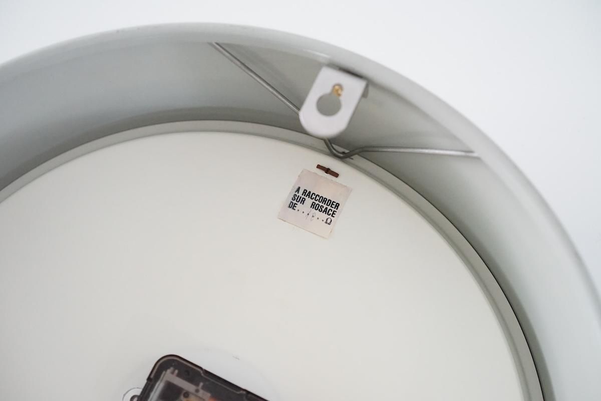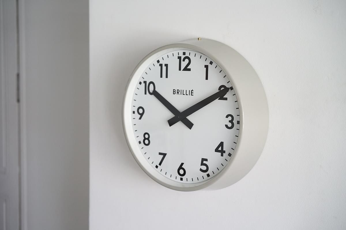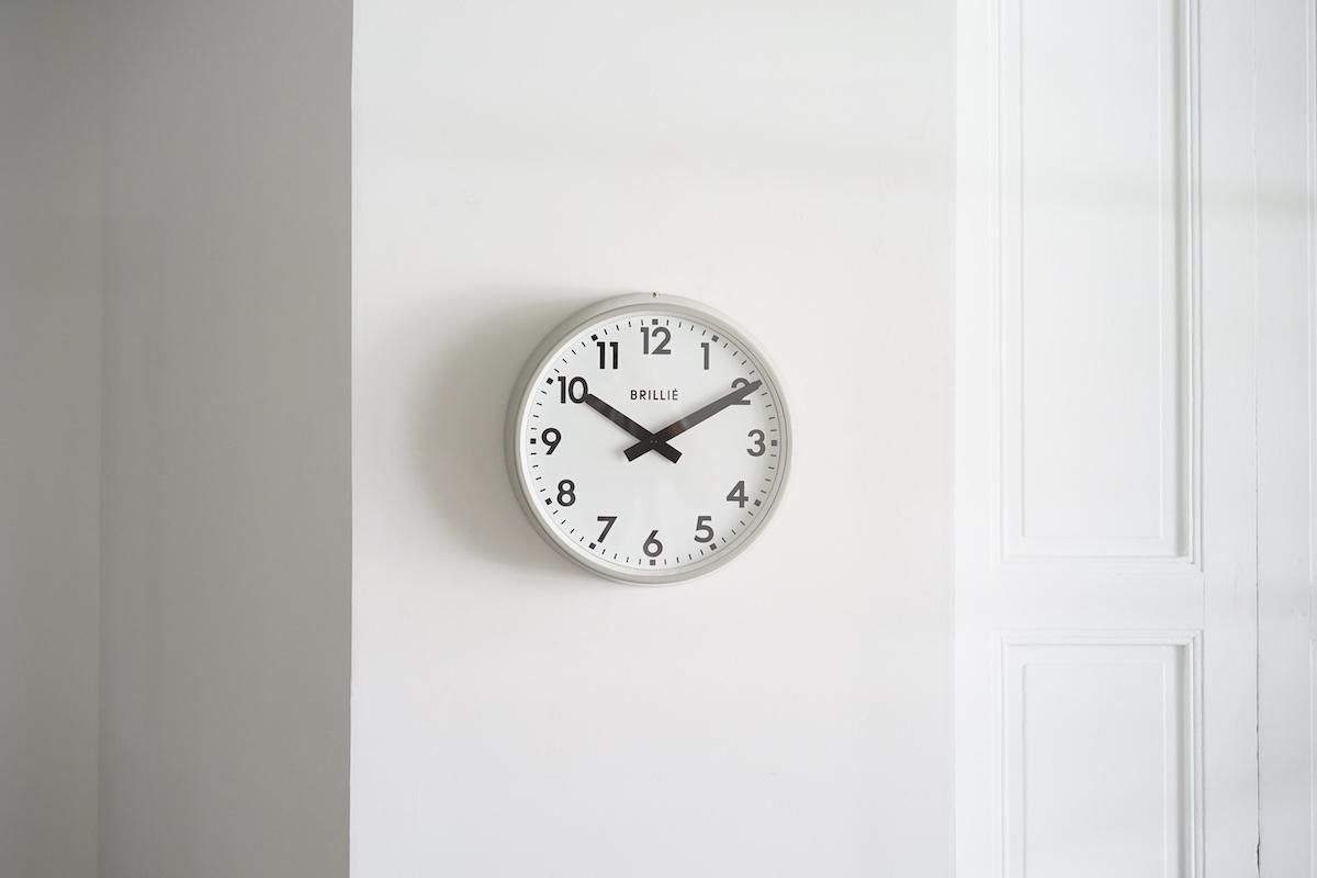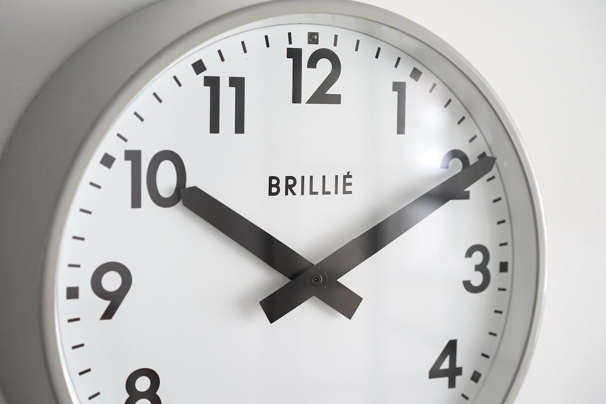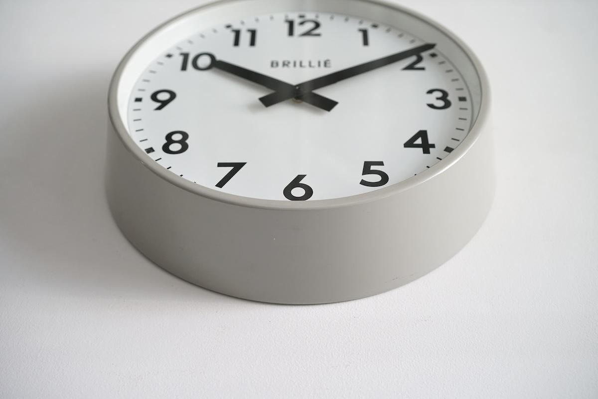 フランス『BRILLIE』社製のウォールクロック。1898年にフランスで創業されメトロや学校など多くの公共施設で使用されているフランスの時計メーカー。オリジナルのフレームカラーがフランスらしくとても良い色合いです。文字盤含め大きなペイントロスもなくデットストックに近く大変良いコンディションです。ムーブメントは音のしないスイープタイプに交換しており単三電池で稼働します。軽量ですので石膏ボードの壁にも取り付け可能です。