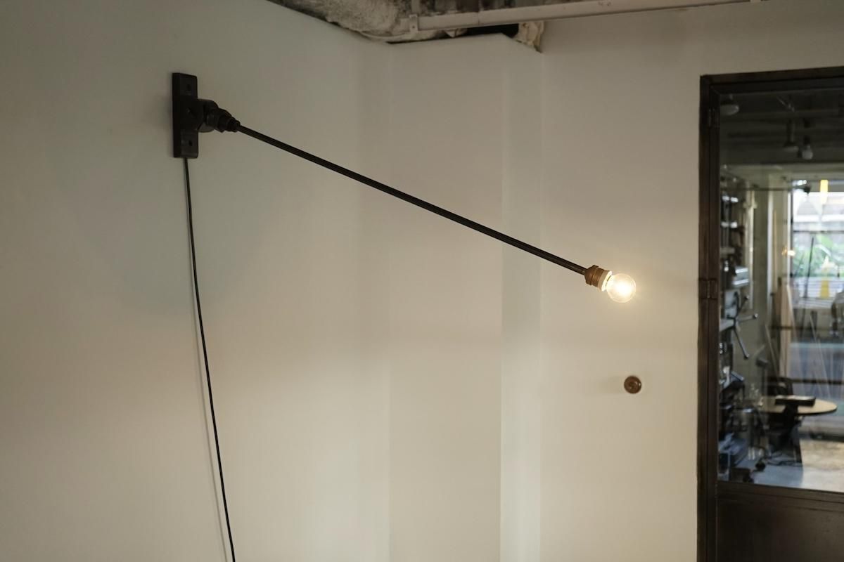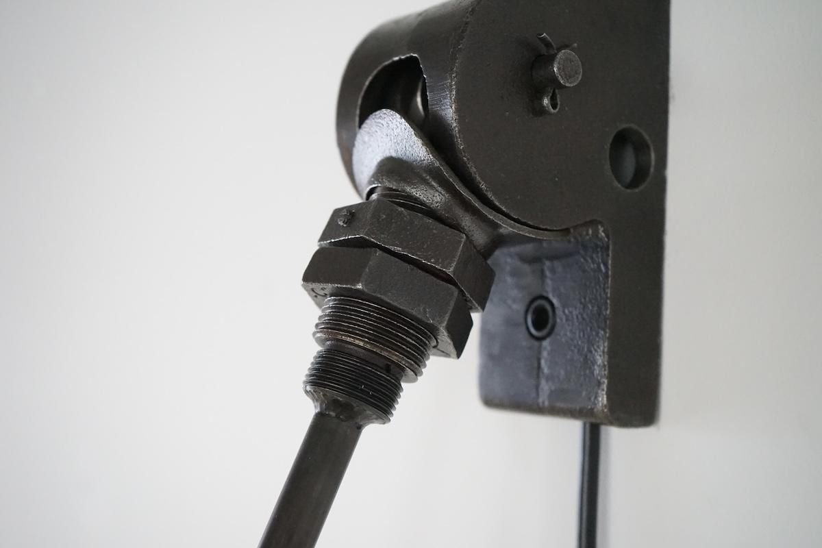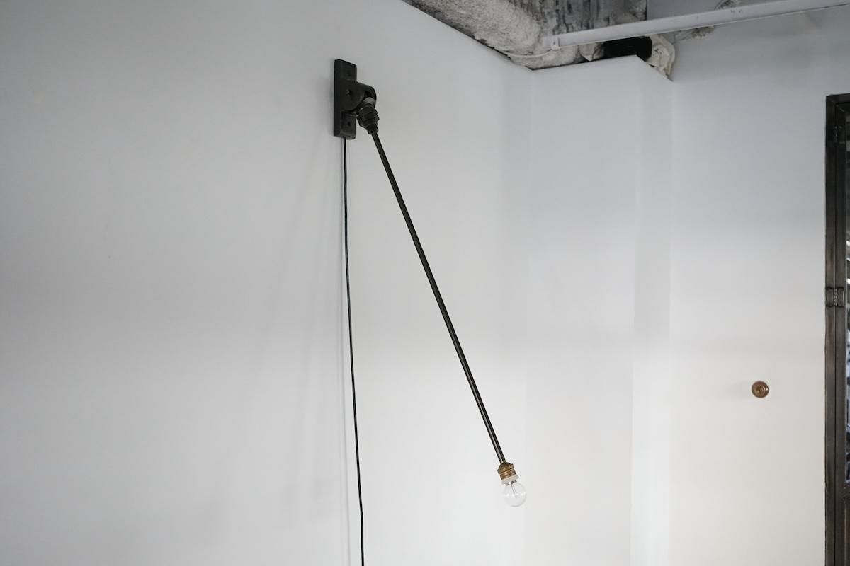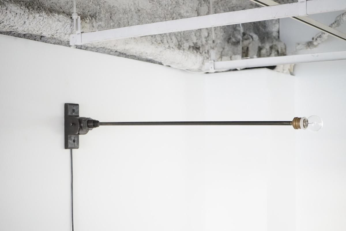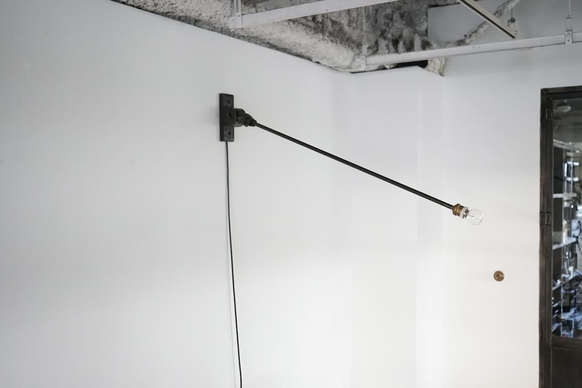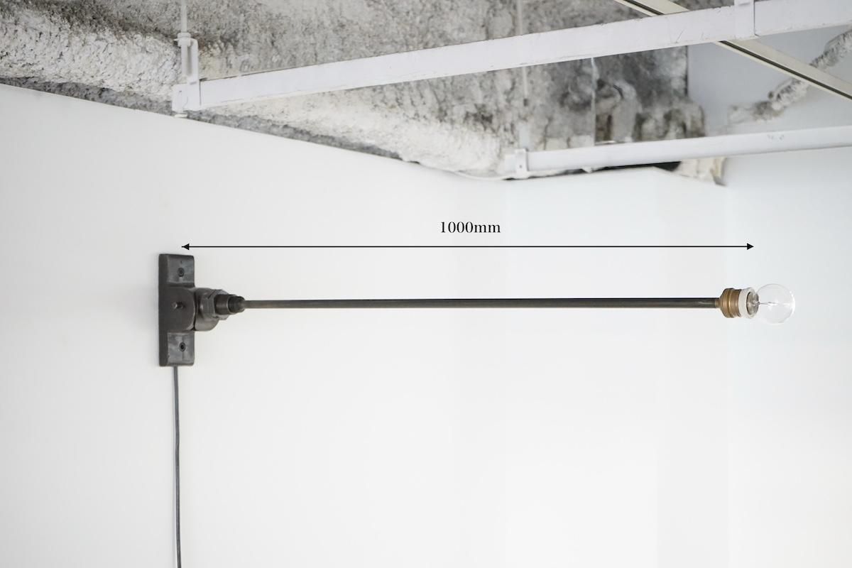 フランス製のインダストリアルウォールランプ。ベース部分は鋳物製でナットを緩める事で上下に可動しお好きな角度で固定できます。ナットは工具を使用しなくても手で回せます。インダストリアルらしい重厚感もありながらシンプルなデザインなので空間を問わずご使用頂けるかと思います。全体的に錆を落としブラックポリッシュにて仕上げております。